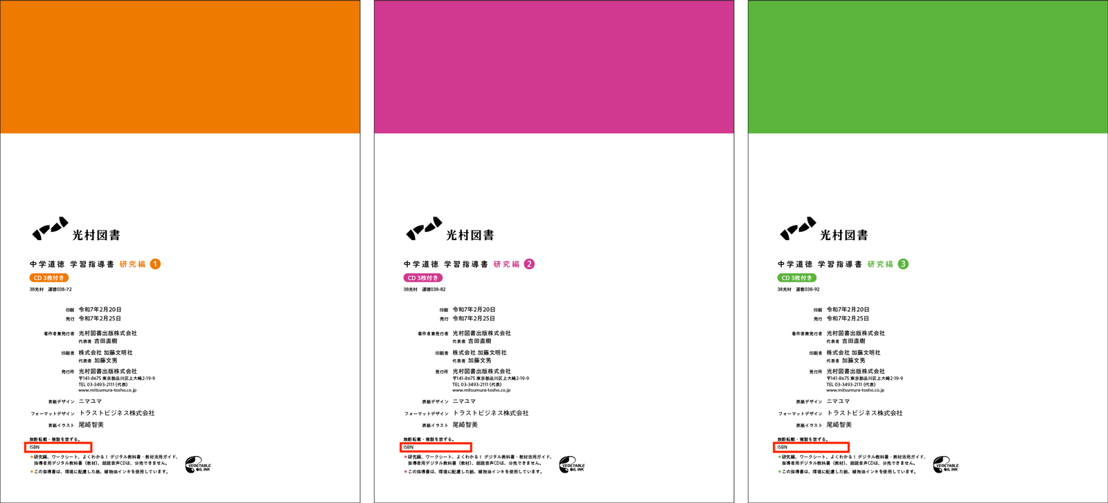 ※ISBNは、「中学道徳 学習指導書 研究編」裏表紙の下から4行目に記載されています。