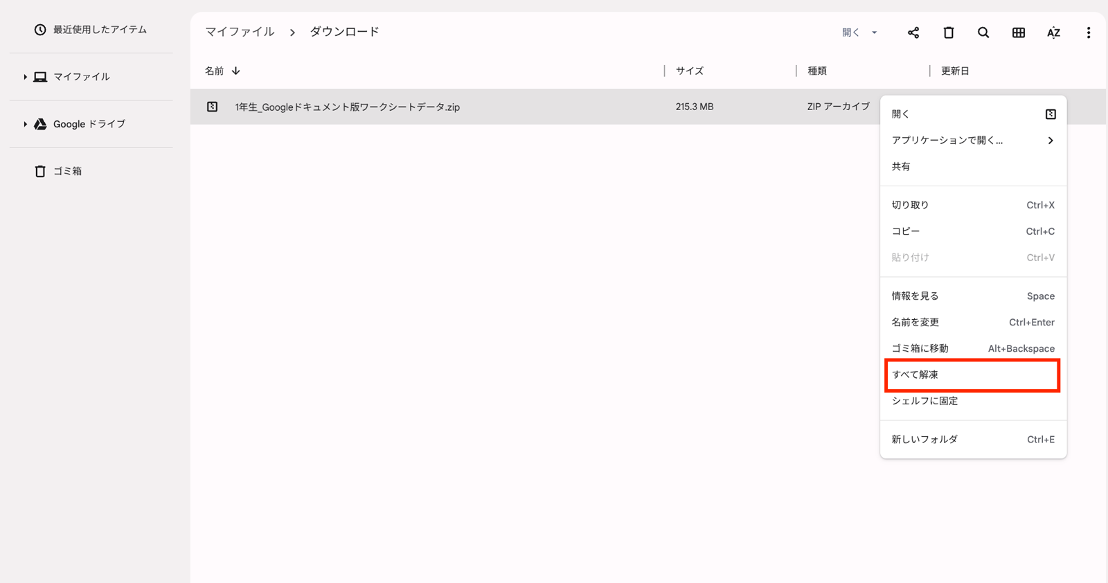 ダウンロードした本データを右クリックし、「すべて解凍」を選択して、ファイルを解凍してください。
